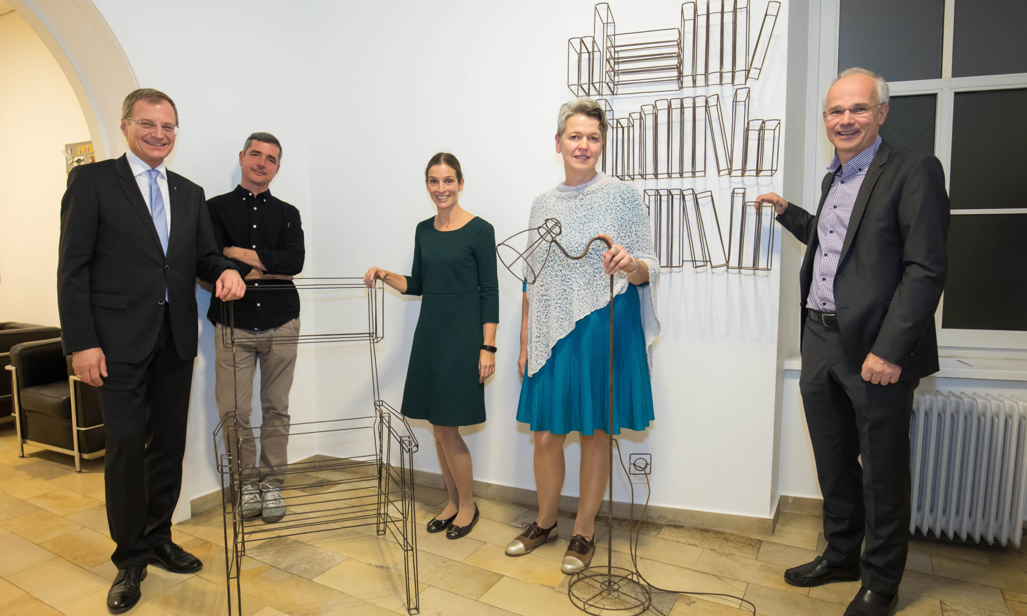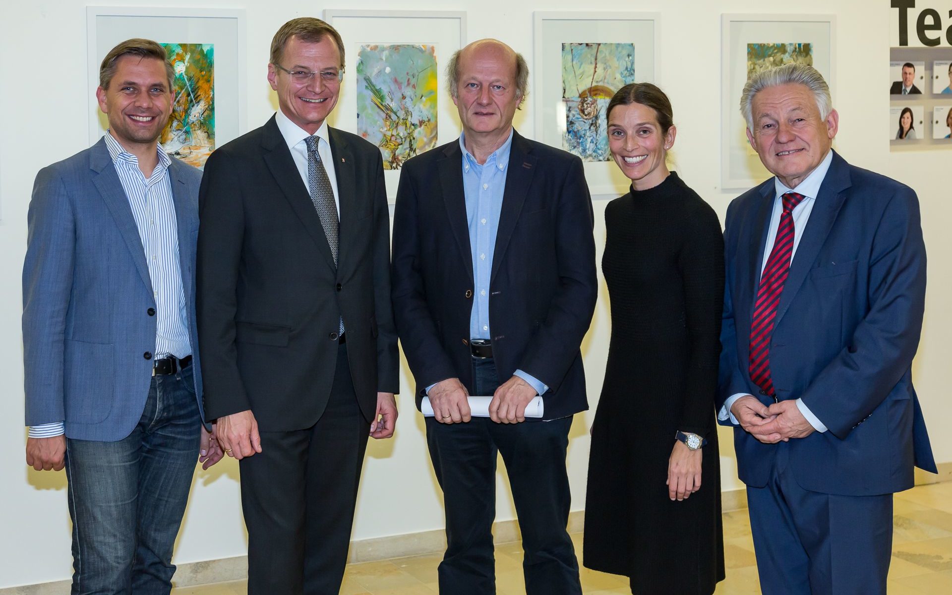 Foto: Landeshauptmann Mag. Thomas Stelzer, Künstler Markus Moser, Obfrau des Kulturvereins HGH Dr. Elisabeth Manhal, Kuratorin Dr. Elisabeth Mayr-Kern und der Enkel von Heinrich Gleißner Clemens Beinkofer