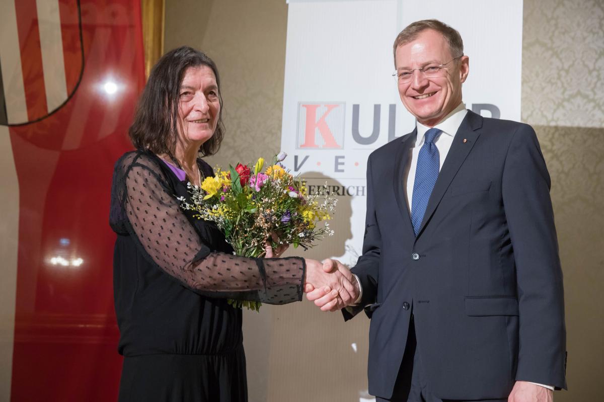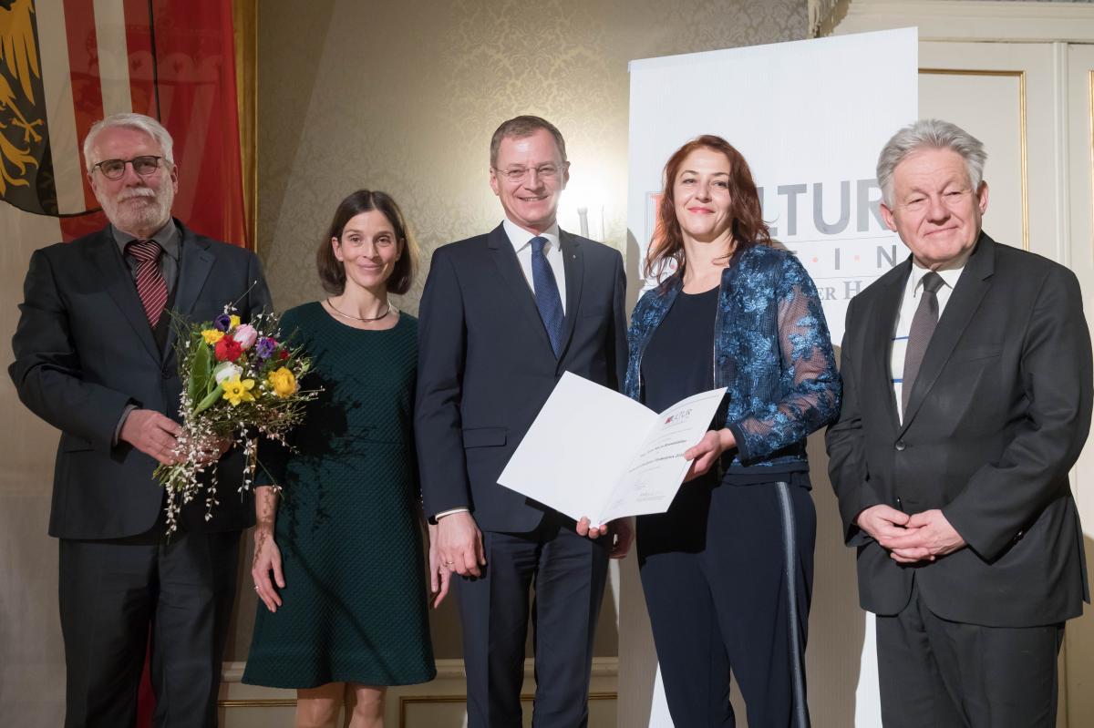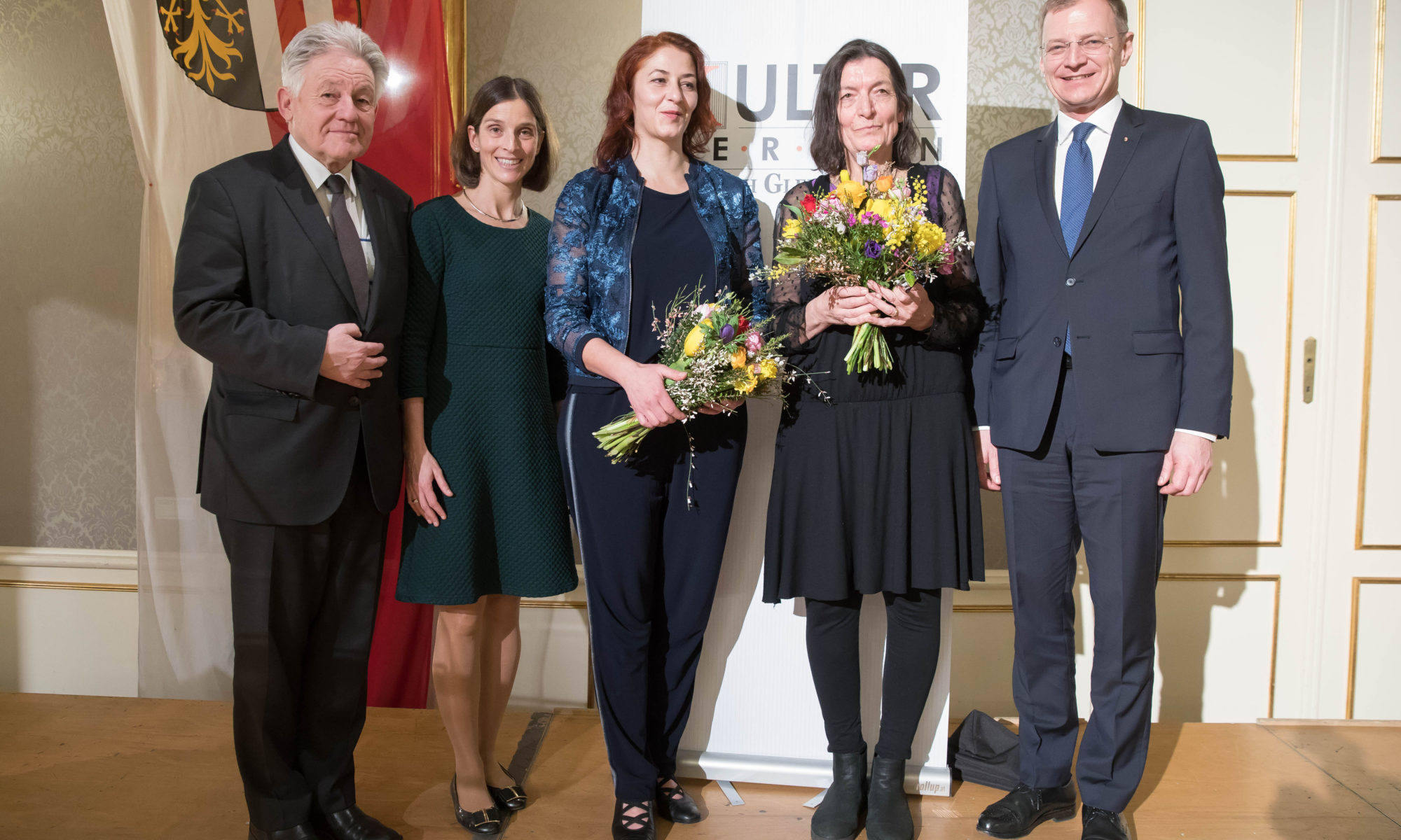 Die Preise werden überreicht von Landeshauptmann Thomas Stelzer; Präsident des Kulturvereines Josef Pühringer und Obfrau des Kulturvereines Elisabeth Manhal.
